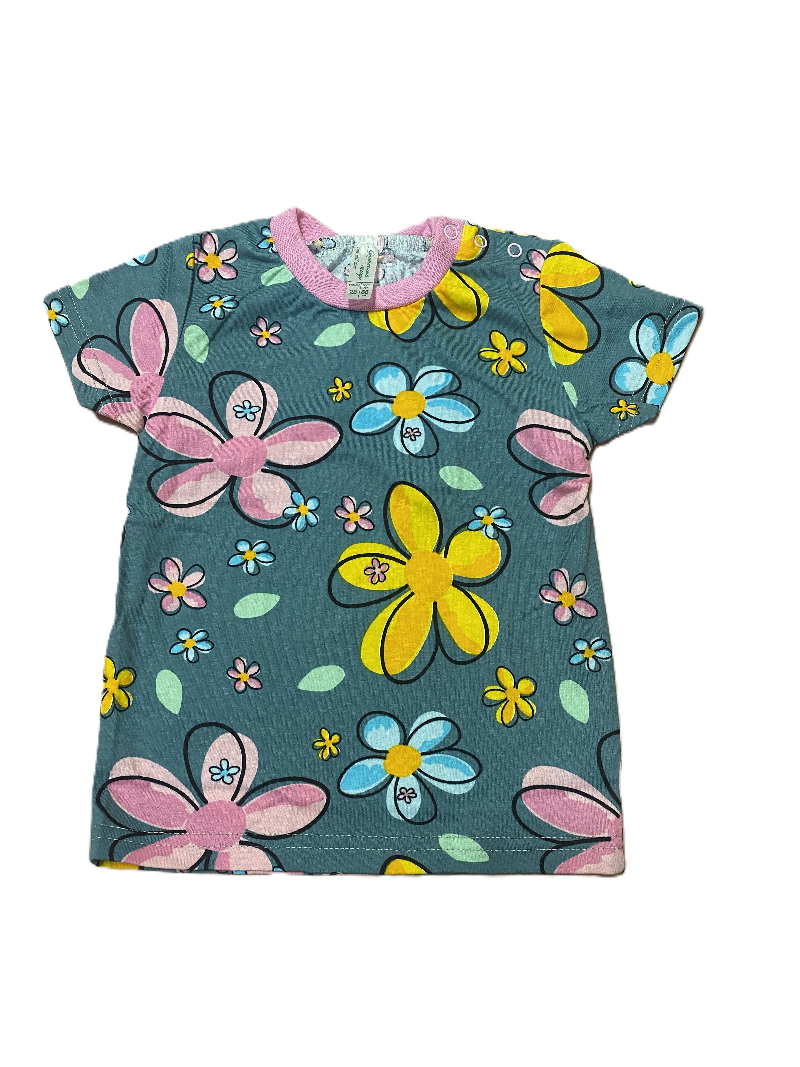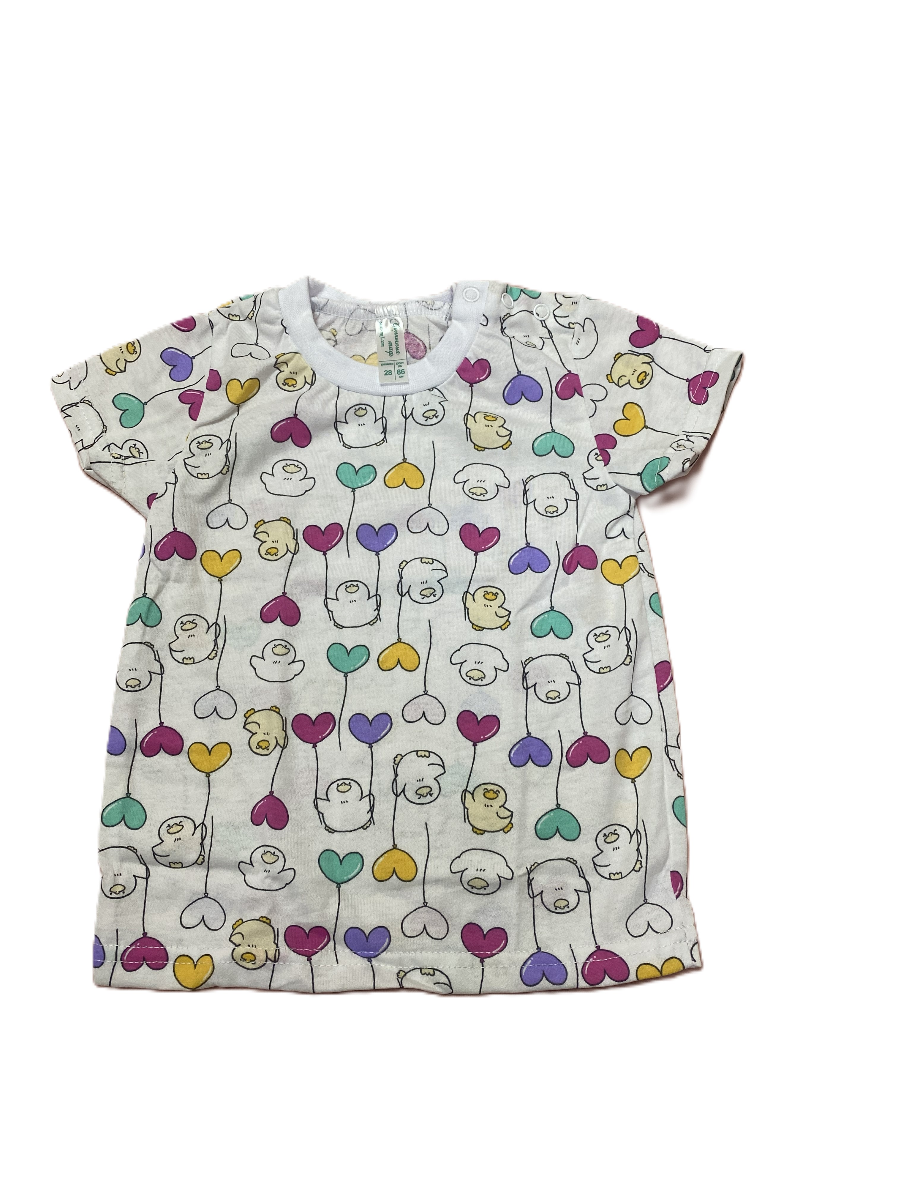 Мягкая и комфортная футболочка из 100%-го хлопка идеально подойдёт маленькой принцессе! Кулирное полотно позволяет коже дышать, обеспечивая сухость и свежесть даже в жаркие дни. Удобные кнопки на плечике делают процесс одевания лёгким и быстрым – никаких хлопот! Удобно, практично и безопасно для здоровья вашей крохи!