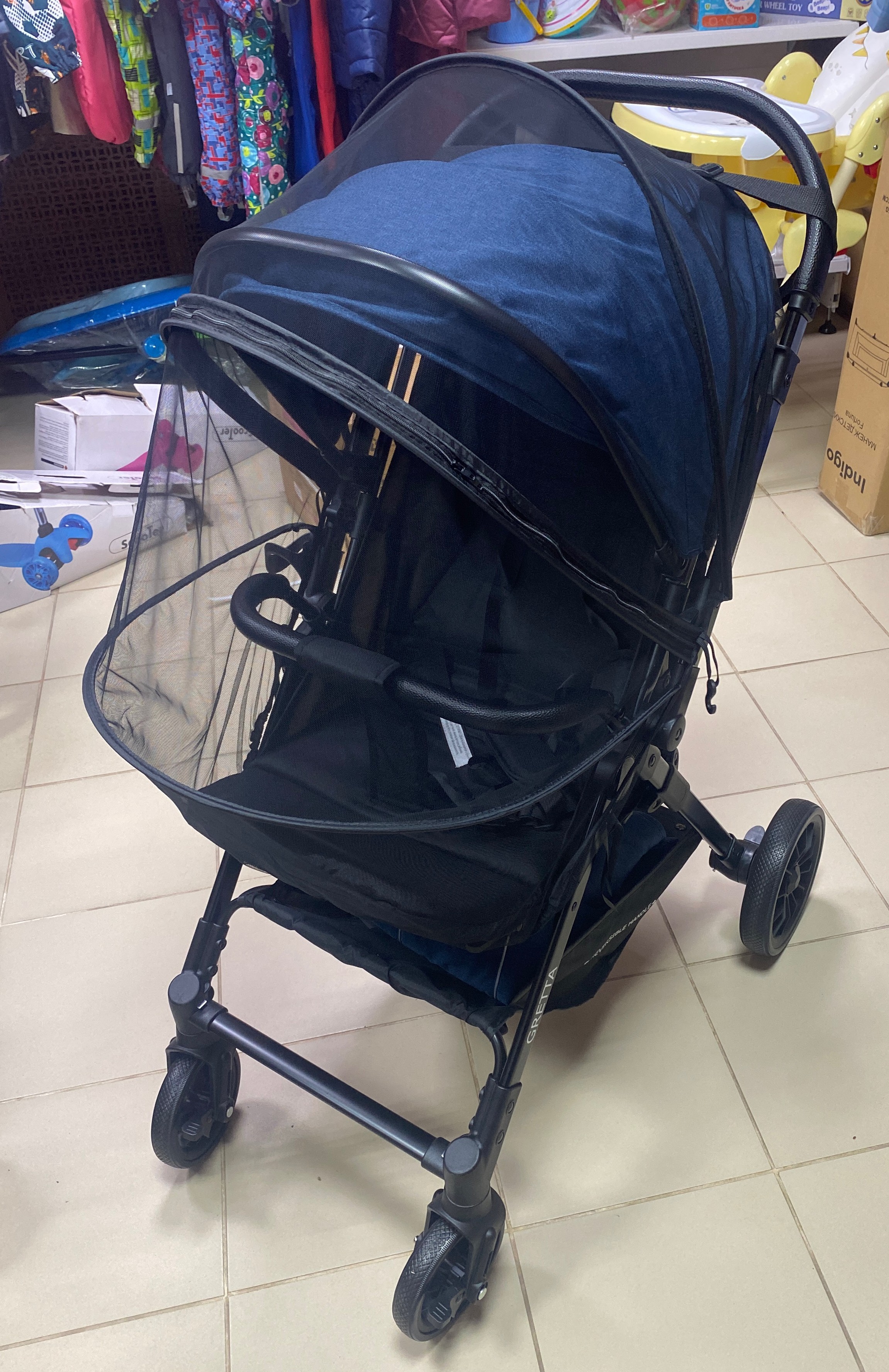 Эта компактная и маневренная коляска с перекидной родительской ручкой а также каркасной москитной сеткой будет вшим незаменимым помощником в передвижении с младенцем. Имеется откидная спинка, которая регулируется до положения лежа с помощью ремешков, регулируемая подножка, 5-ти точечный ремень безопасности, съемный бампер и родительская ручка из эко-кожи, подстаканник, сумка для мамы и утепленная накидка на ножки. Колеса передние поворотные без фиксатора, имеется тормоз передних и задних колес. Диаметр передних колес 15 см, задних - 21 см.