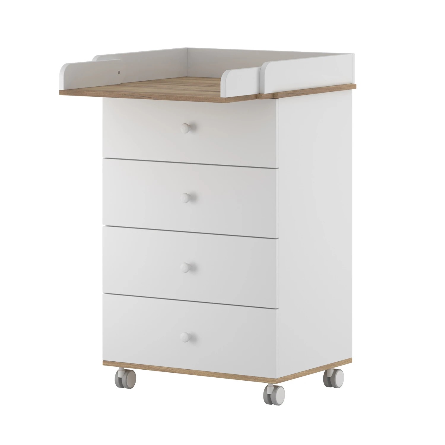 Идеальный комод Incanto Nova для детской комнаты! Четыре удобных ящика помогут организовать хранение вещей малыша, а съемная пеленальная доска обеспечит комфорт и безопасность новорожденному. Белый цвет с элементами дуба гармонично впишется в любой интерьер. Удобство использования и стильное оформление делают этот комод превосходным выбором родителей, заботящихся о комфорте своего ребенка. Размеры пеленального столика в сантиметрах: длина 75, ширина 53, высота бортиков 11. Есть колеса. Материал корпуса : ЛДСП.