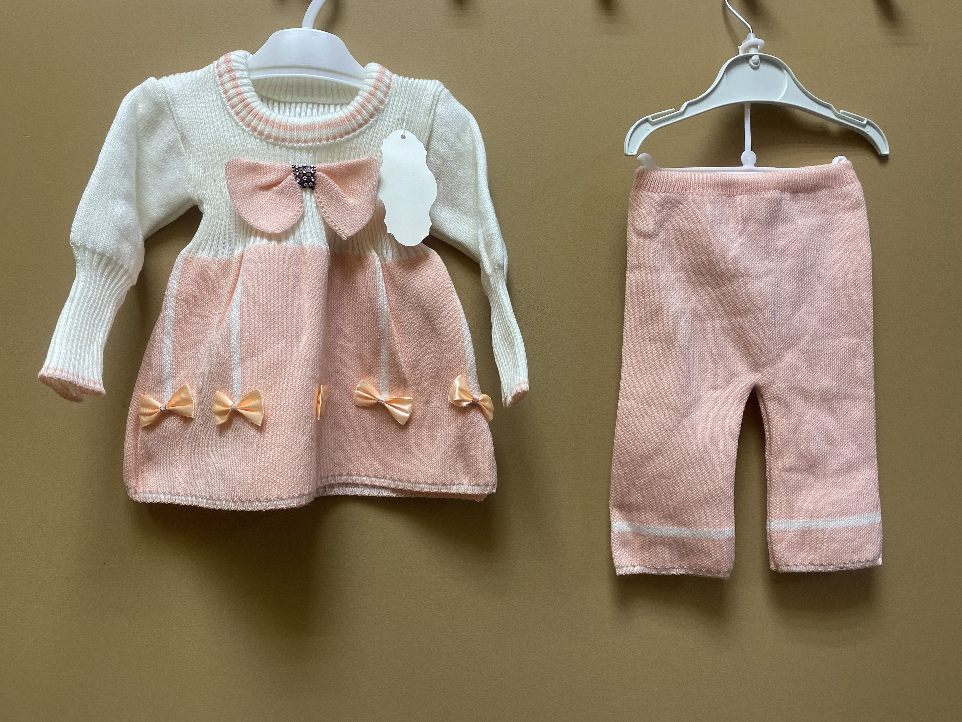 Комплект персикового цвета с небольшим дефектом на штанишках на внутренней стороне, где пришита резинка, поэтому цена снижена.