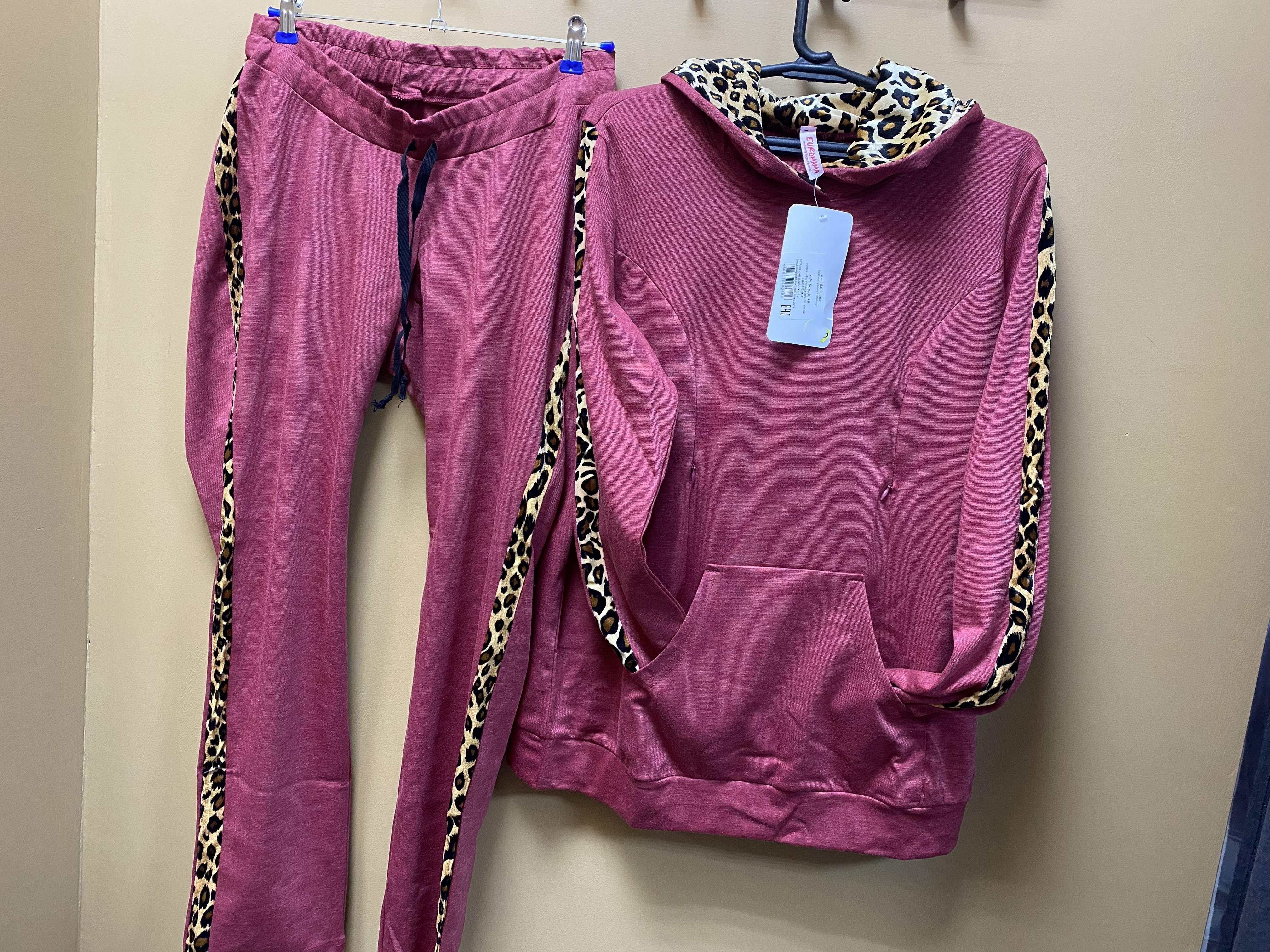 Модный костюм красного цвета с леопардовым принтом идеально подчеркнёт вашу индивидуальность! Размер 48 обеспечит комфорт даже в период беременности и кормления. Удобные брючки и стильный свитшот с капюшоном – ваш незаменимый комплект для повседневности и особых случаев! Комфорт, стиль и уверенность – именно это вы получите, выбрав наш уникальный костюм! Свитшот выполнен с секретиками для кормления на молниях сбоку. Костюм выполнен из вискозы (65%) и полиэстера.