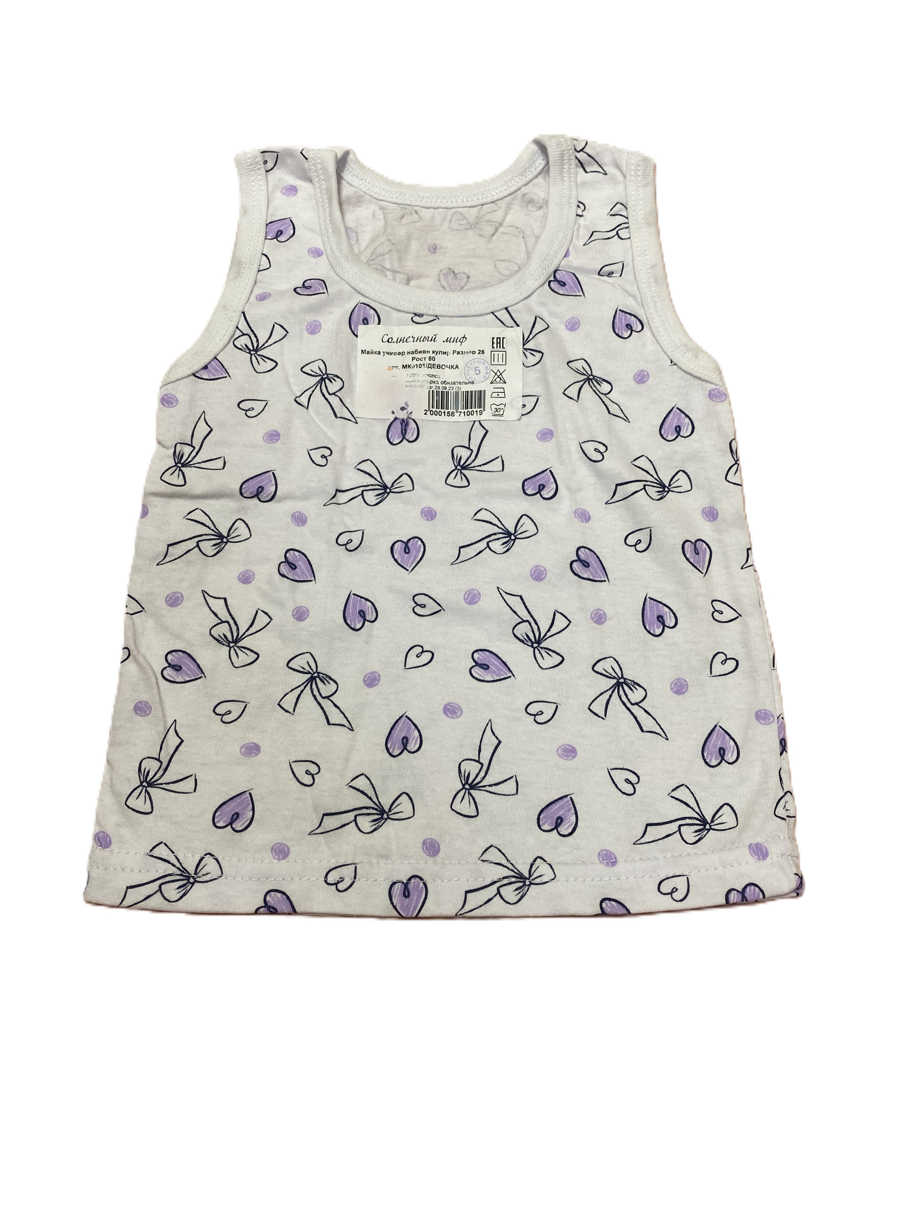 Комфортная майка для девочки создана из качественной набивной кулирной ткани, обеспечивающей мягкость и гипоаллергенность изделия. Идеальна для ежедневного ношения благодаря отличной воздухопроницаемости и способности сохранять форму после стирки. Подходит по размеру на рост 104 см – идеальный выбор для уютных образов вашего ребенка!