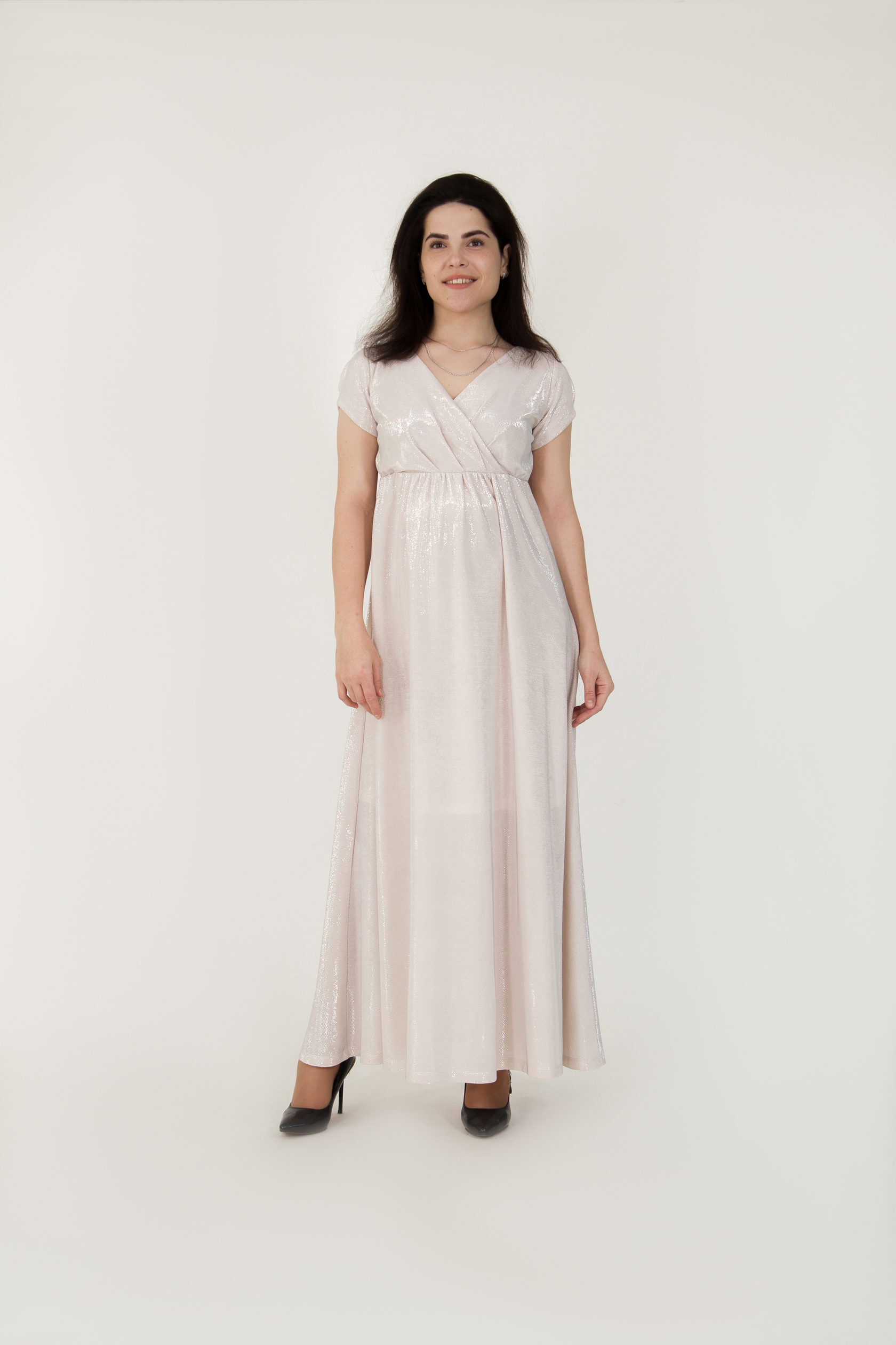 Платье очень красивое , ткань мерцает и переливается, идеально подойдет для любых торжеств, в том числе и для бракосочетания. Внутри есть подкладка из хлопка, платье не просвечивается.