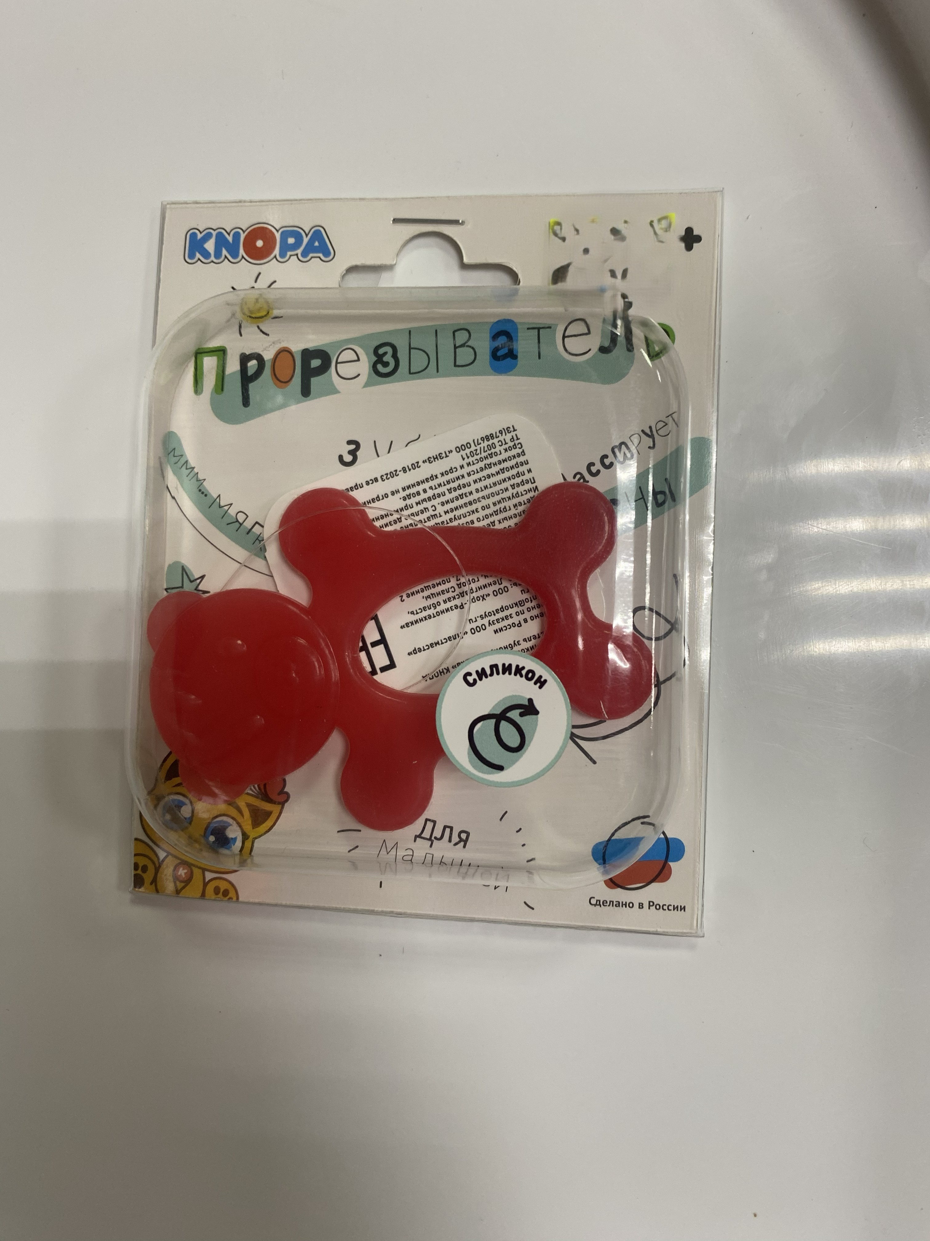 «Мишка Кнопа» — очаровательный прорезыватель из мягкого силикона идеально подходит для первых зубиков вашего малыша! Помогает облегчить дискомфорт при прорезывании зубов, массируя десны и снимая зуд. Удобная форма и яркий красный цвет привлекают внимание ребёнка, способствуют его эмоциональному развитию и радости от игр. Безопасен благодаря гипоаллергенным материалам и строгим стандартам качества.
