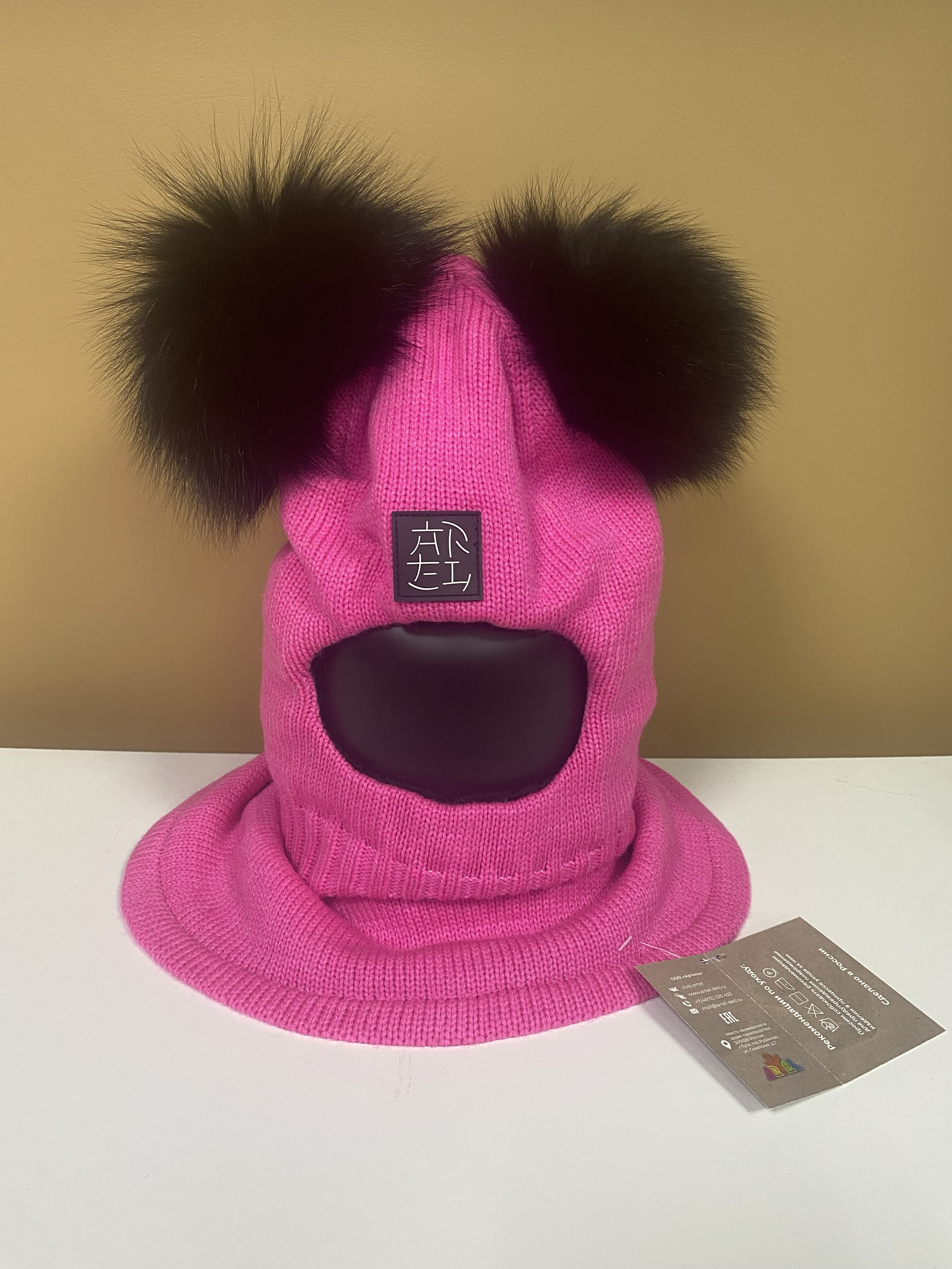 Этот красивейший шлем с двумя помпонами из натурального меха в итальянском дизайне создадут неповторимый образ сашей девочке даже в сильный мороз. Шлем очень практичен, так как нет необходимости покупать дополнительно шарф или снуд.