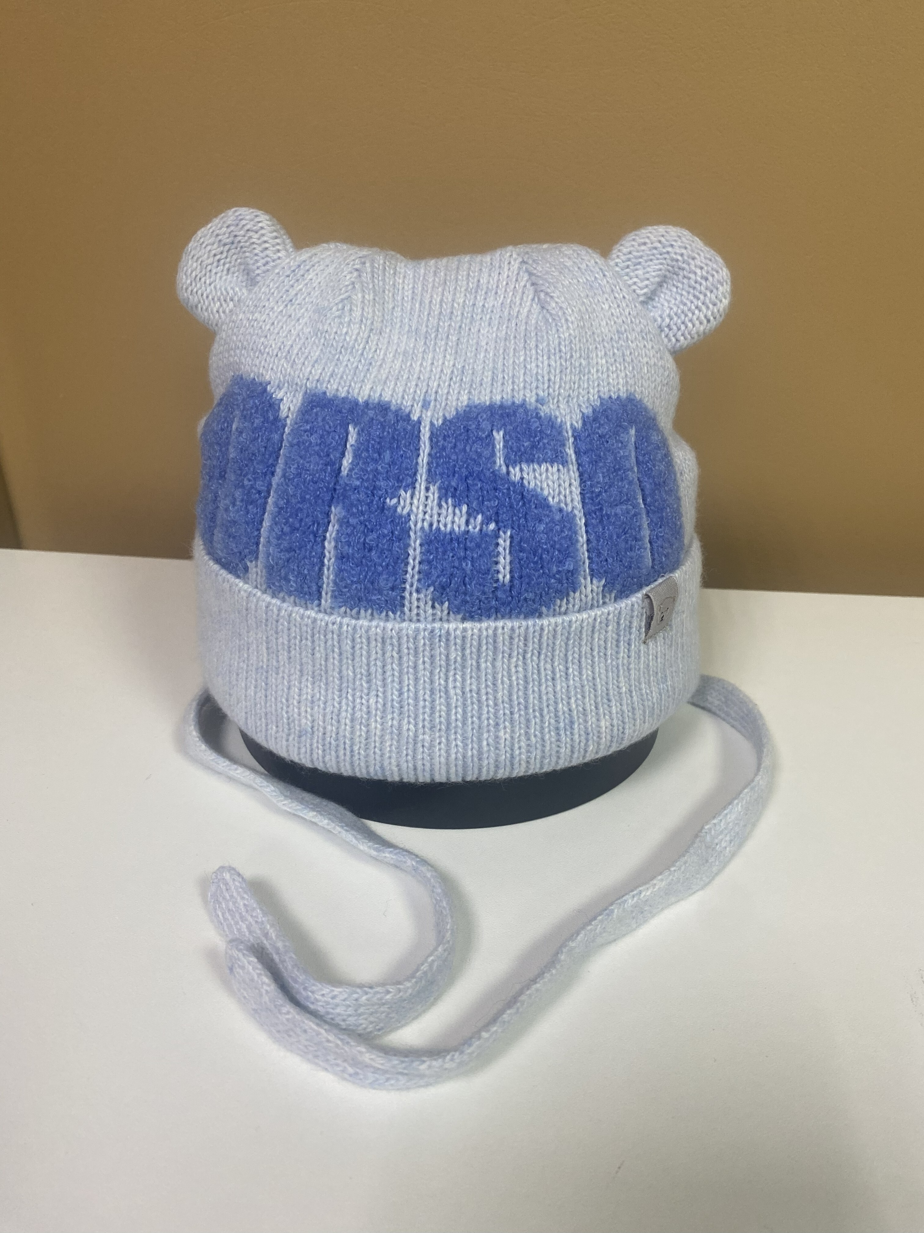 Эта прекрасная теплая шерстяная зимняя шапка на утеплителе и подкладке из хлопка будет согревать вашего малыша в холодную зиму. Для удобства есть завязки , шапка декорирована ушками .